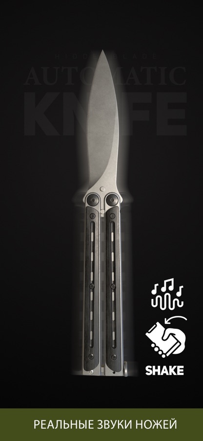 Например, выбери нож бабочка и встряхни устройство. Нож откроется. Если зажмешь рукоять ножа и начнешь двигать устройством, то услышишь звуки ножа.