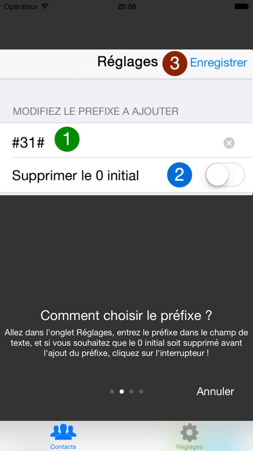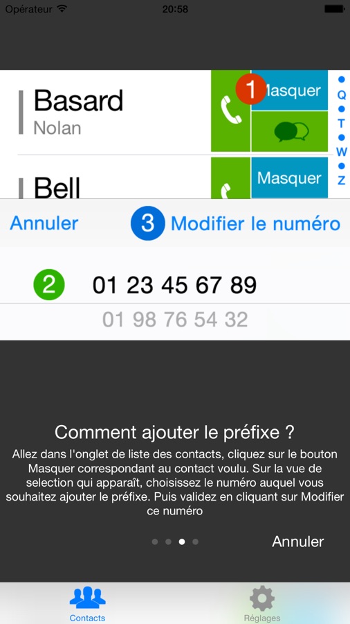 Excellente fonctionnalité pour les artisans, commerçants ou représentants qui ne veulent pas dévoiler leur numéro de téléphone privé. Le préfixe utilisé pour vous passer en appelant caché peut être modifié dans l’application en fonction de votre pays et opérateur.