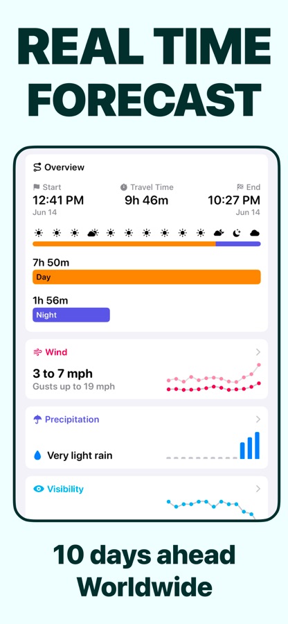 • Сократите затраты на поездки, избегая неблагоприятных погодных условий, таких как сильные дожди или сильные ветры.