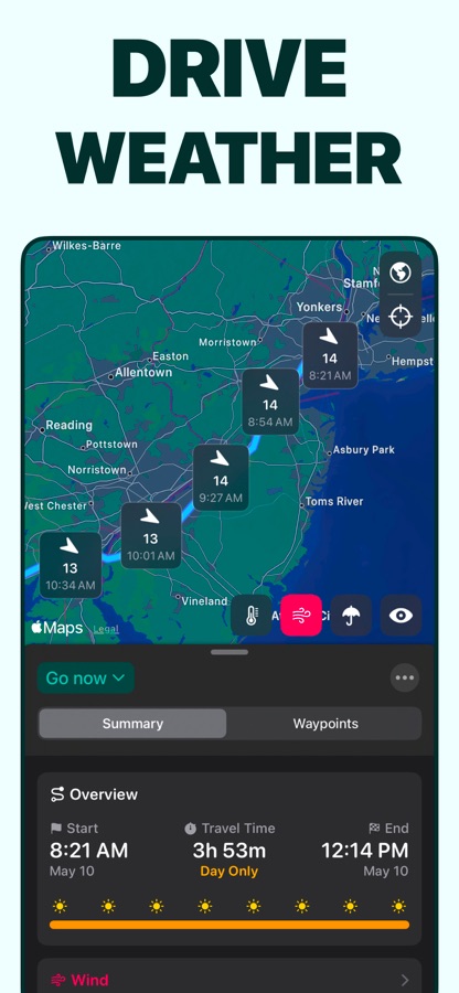 Wayther — быстрое, мощное и простое в использовании приложение, разработанное для точных мировых прогнозов погоды вдоль вашего маршрута.