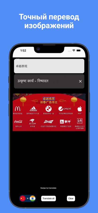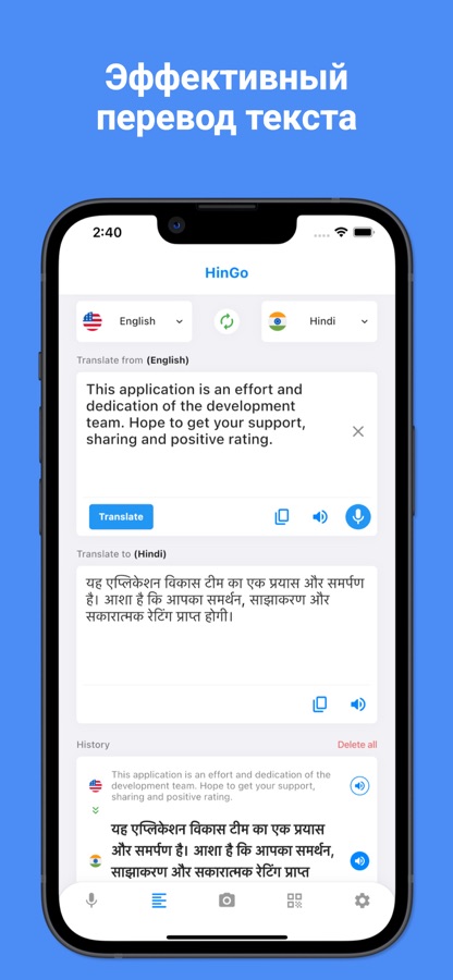 Переводите голос, текст, фото с хинди на 45 языков и наоборот точно, чрезвычайно удобно.