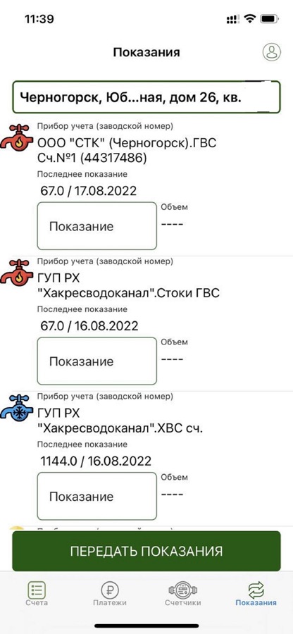 Передача показаний счетчиков