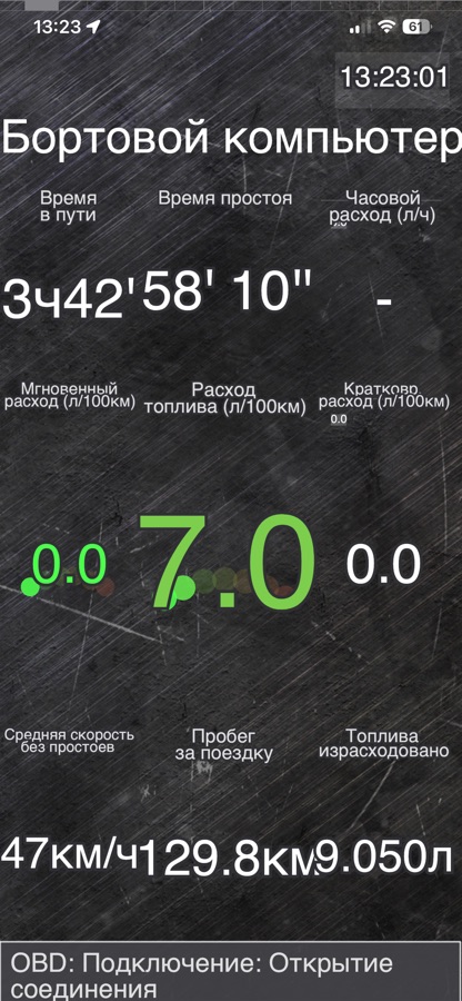 ХобДрайв использует ELM327 адаптер и данные GPS, чтобы непрерывно собирать, накапливать и показывать статистику во время движения.