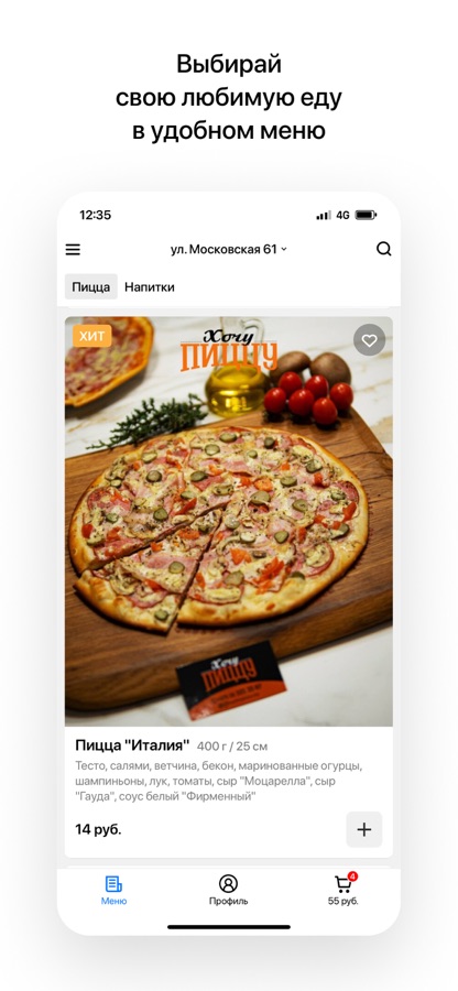 «Хочу пиццу» — это приложение для доставки еды в Бобруйске