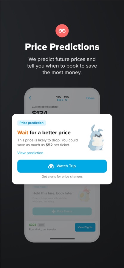 You can watch a trip right in the app and we’ll send you a notification when it’s the best time to buy — recommending you to book now, or maybe wait just a little longer.