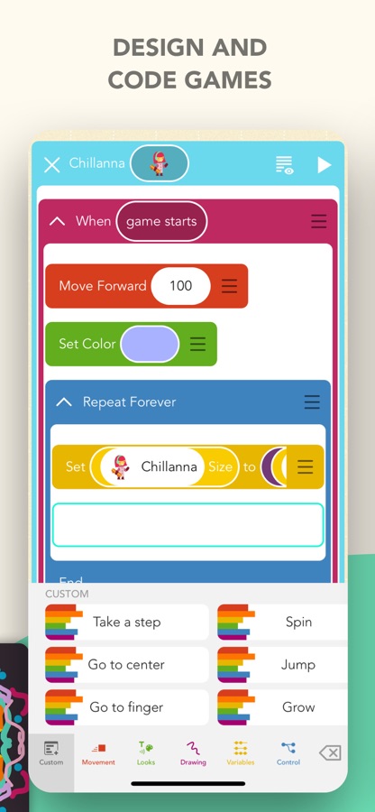 Whether games, art, stories or more, you can code whatever you want with kid-friendly programming. Publish your creations to Hopscotch’s fully moderated community, where kids can play and learn from your games.