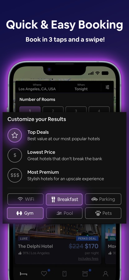 On-the-go? Use our app to book travel deals so good we don’t offer them on the web. Experience the simplest hotel booking app – just 3 taps and a swipe to book in under 60 seconds.