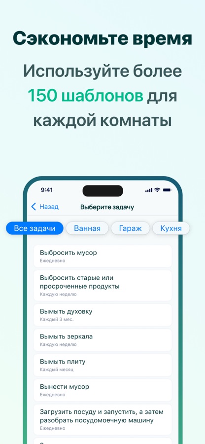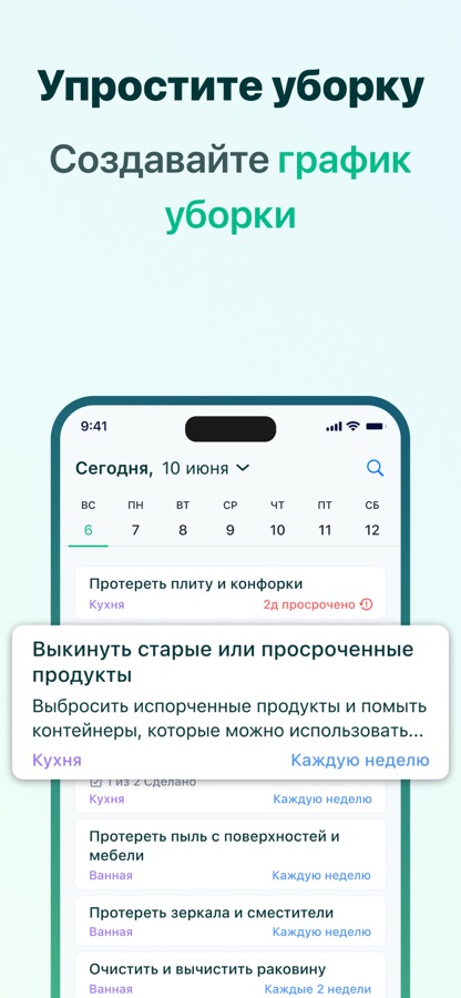 • Добавьте свои задачи по уборке и получите индивидуальный график уборки