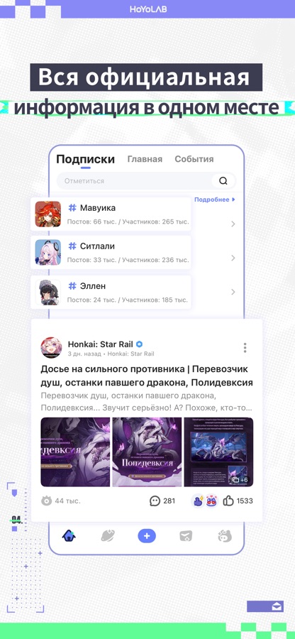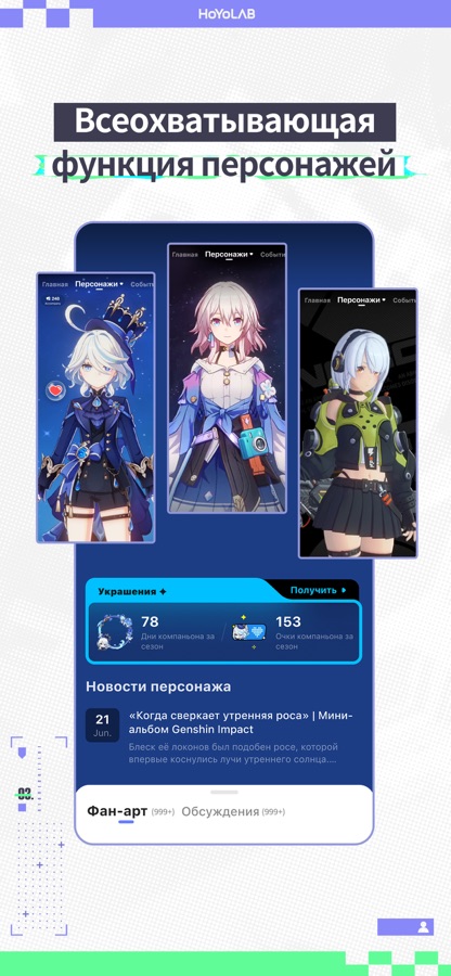HoYoLAB — это платформа игрового сообщества, где собраны новости популярных игр, разнообразный фан-арт, полезные инструменты, награды и множество другого контента.