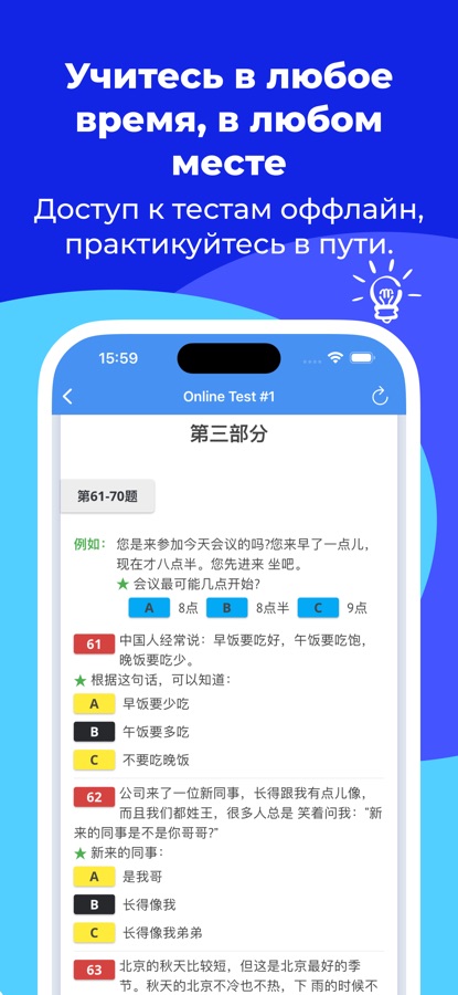 • Полную симуляцию опыта прохождения теста HSK.