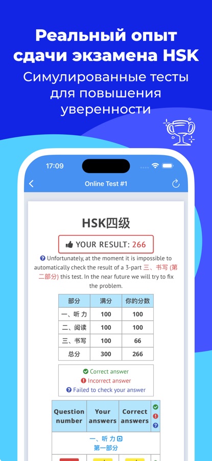• Полную симуляцию опыта прохождения теста HSK.