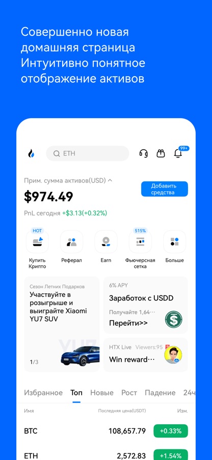 Описание HTX:Покупка BTC, Криптобиржа
