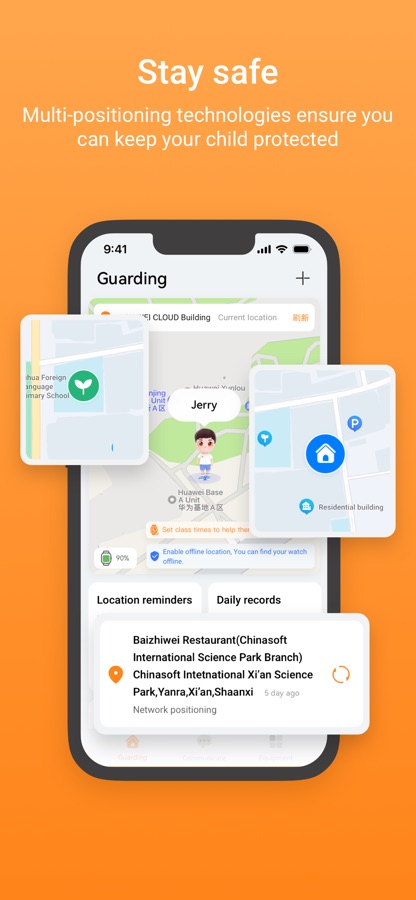 Multi-factor positioning: Provides positioning based on satellites, networks, and multiple auxiliary methods to help you find out your child’s location in real time.