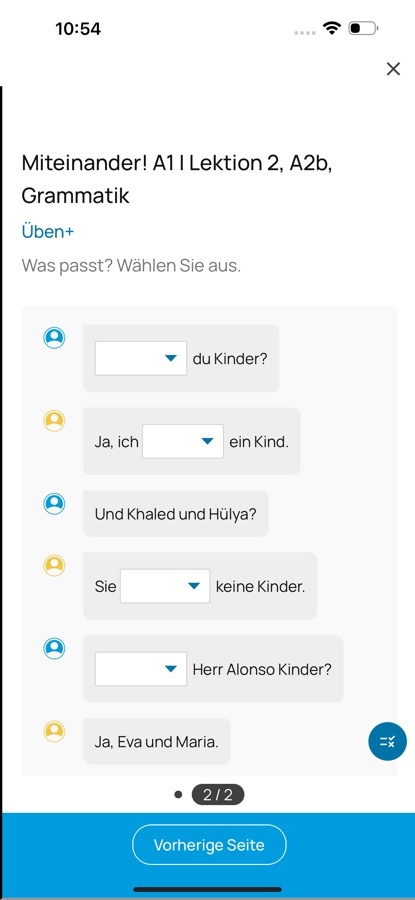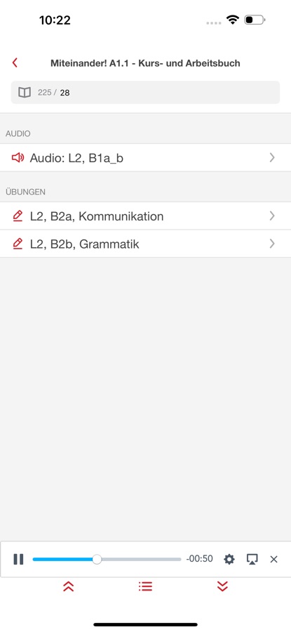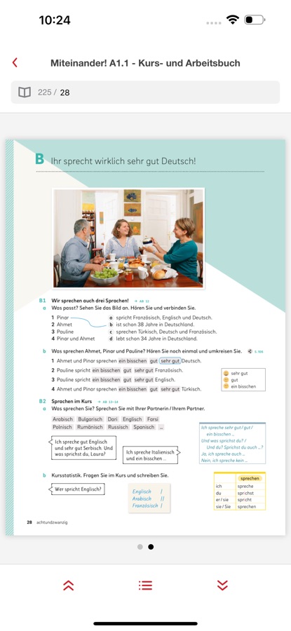 Auf dem iPad spielen Sie die Hörtexte und ggf. Videos direkt auf der Buchseite per Klick ab. Auf iPhone wählen Sie alle Inhalte bequem aus einer Liste neben der Seite aus. Bei vielen Büchern können Sie nahezu alle Übungen auch interaktiv lösen. Klicken Sie einfach bei der Übung auf das entsprechende Icon oder den jeweiligen Eintrag in der Liste. Lassen Sie sich nach der Übung zur Selbstkontrolle die Lösungen anzeigen.