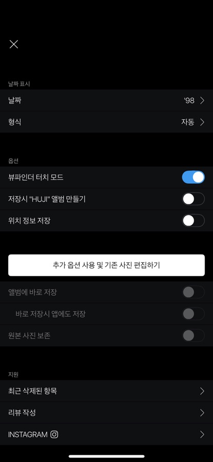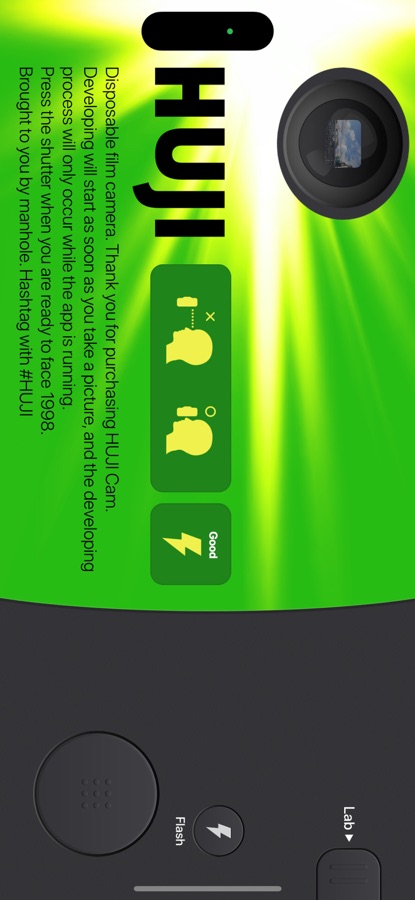 HUJI Cam позволяет запечатлеть памятные моменты как в старые добрые времена на пленочный фотоаппарат. Производители фотоаппаратов во все времена стремились дать возможность запечатлеть лучшие моменты, и в 1998 году им удалось улучшить качество фотографий. HUJI Cam позволяет делать яркие и выразительные снимки, стилизованные как фотографии тех лет.