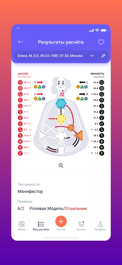 Наше приложение по Human Design включает в себя: