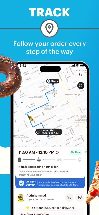 Variety that matches your cravings: whether it’s Pizza, Shawarma, Sushi, Sandwiches, Fresh Salad, Fast Food, Ice Cream, Coffee, Bakery treats, Japanese dishes, or authentic Arabic meals, you’ll always find what you’re looking for. Plus, you can enjoy international cuisines, traditional favorites, healthy options, organic products, and more.
