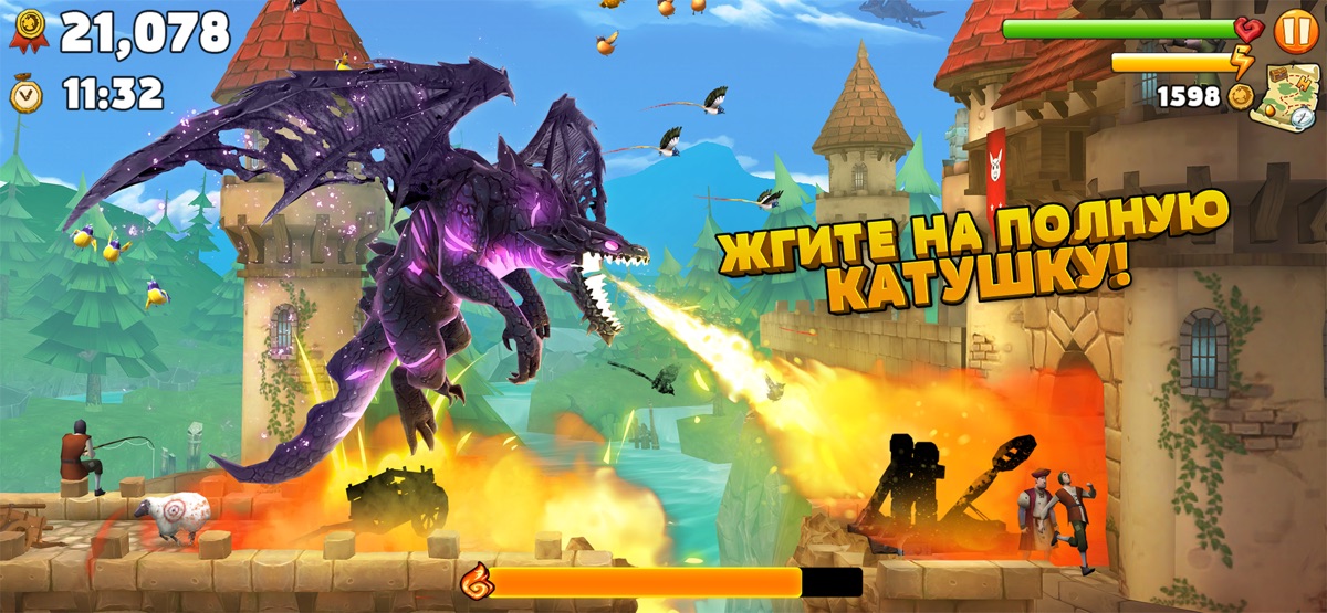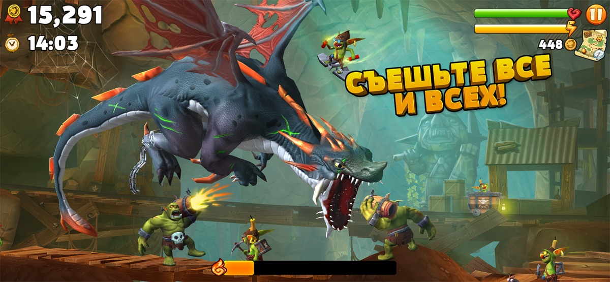 • Ешьте больше и набирайте очки: голодным драконам всегда мало!