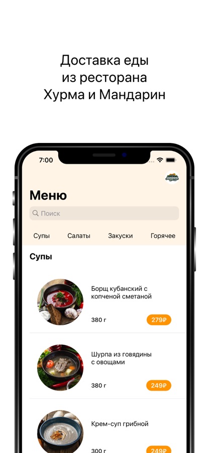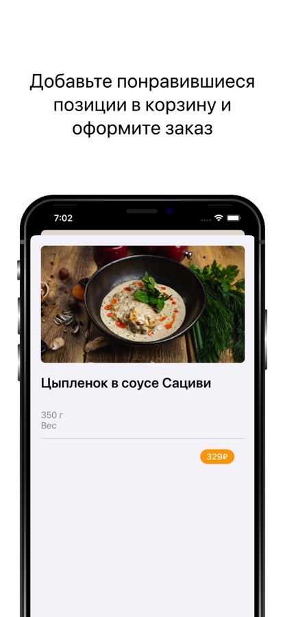 Как сделать заказ в приложении “Хурма и мандарин”: выберите понравившиеся позиции из меню, добавьте их в корзину и перейдите на экран оформления заказа (по нажатию на иконку корзины).
