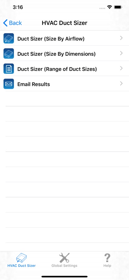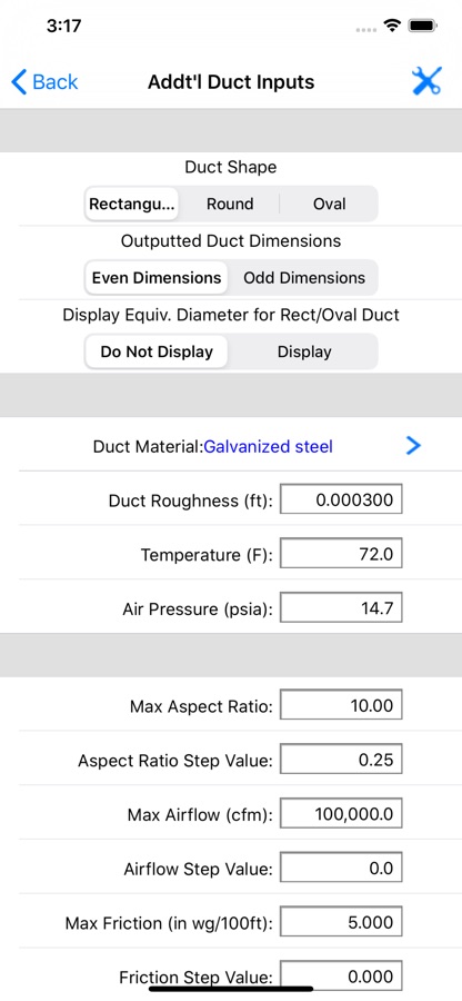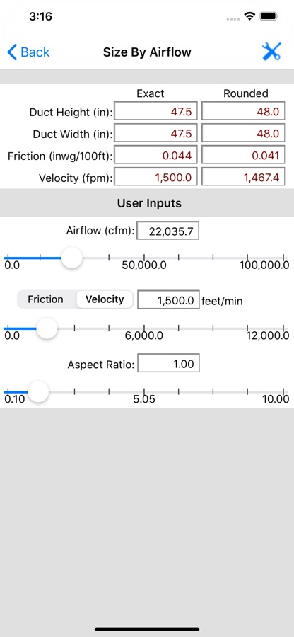 The HVAC Duct Sizer is a universal duct sizing app so that it works on both the iPhone and iPad and adjusts its screen size accordingly.