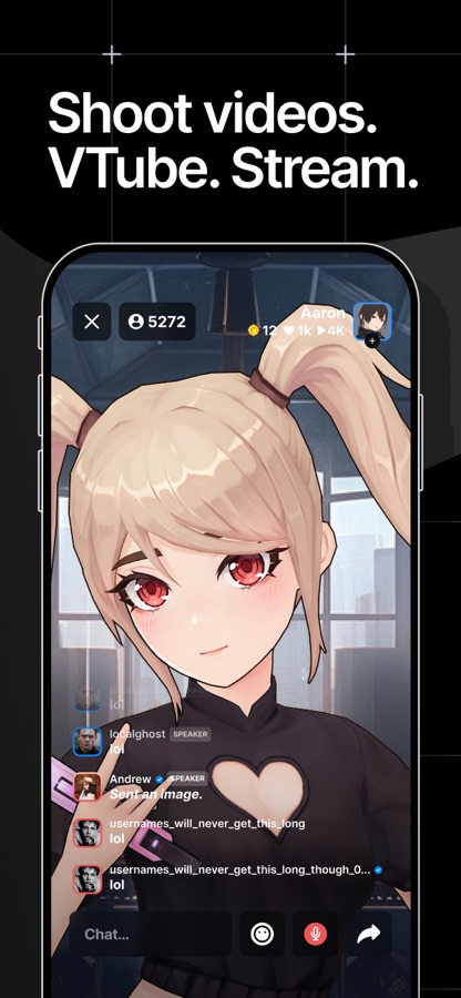 2. You can use our studio to shoot and record as a VTuber right from your phone. With our advanced facial and hand motion capture technology, you can bring your virtual identity to life in any way you like — whether it’s a cute, silly, or scary avatar.