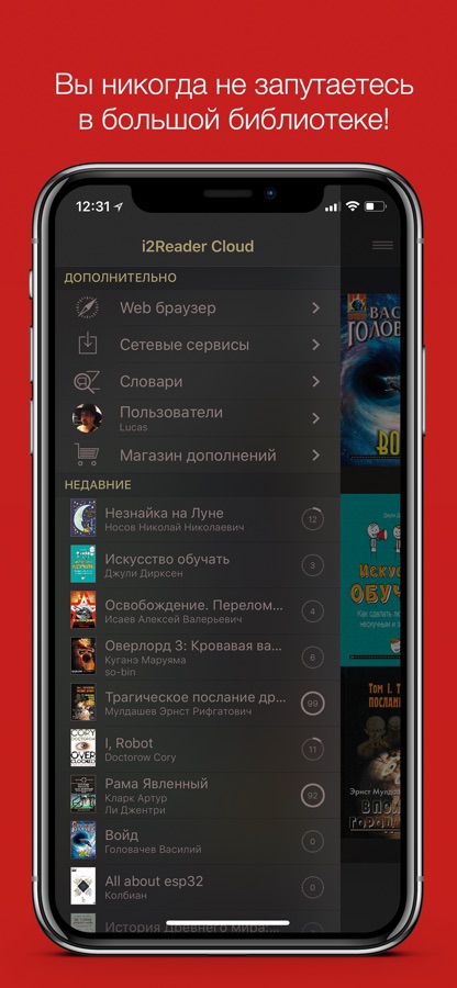 • Вы не потеряетесь в большой библиотеке и быстро найдете нужное: удобная выборка и сортировка книг по различным критериям. Так же есть удобная возможность создавать полки, которые синхронизируются через iCloud;