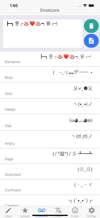 i2Symbol Emoji offers big collection of HD Cute Emoji, Text Symbols, Text Emoticons, Emoji Art Writer, and Cool Text Styler to express your emotions in daily chat.