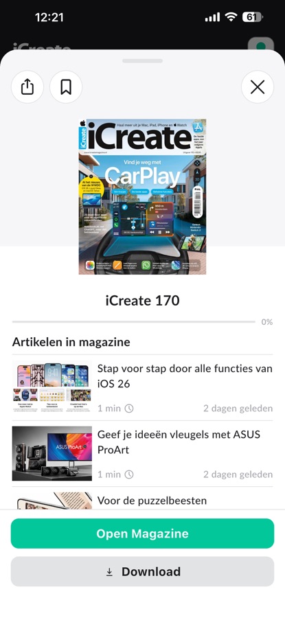 Lees iCreate digitaal op je smartphone of tablet met de iCreate app. Log als abonnee in met je iCreate account en krijg toegang tot alle digitale edities van iCreate. Lees het als een magazine of browse door de losse artikelen. Download edities naar je apparaat en lees offline, ideaal voor op vakantie of tijdens lange reizen. Maak een leeslijst met je favoriete edities en/of artikelen.