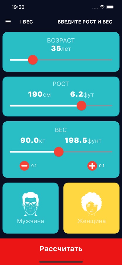 Узнайте свой идеальный вес, ИМТ, ежедневные калории и процент жира в организме.