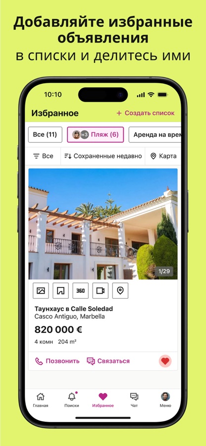 • Сохранять понравившиеся объявления в избранных. Кроме того, с помощью нашей функции совместных списков вы сможете делиться вашими избранными с близкими. Вы все сможете оставлять комментарии к объявлениям, добавлять понравившиеся объявления в избранные или удалять те , которые уже не интересуют.