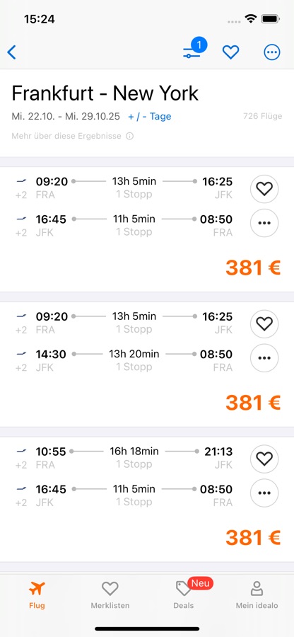 ▶Umfassende Filtermöglichkeiten: Filtere die Angebote nach Preis, Ankunfts- oder Abflugzeiten, Zwischenstopps, Airline, Zahlungsmittel, Anbieter oder CO₂-Emissionen