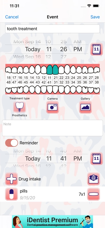 i-Dent поможет сохранить информацию о визите к стоматологу: лечение зубов, протезирование, лечение десен, напоминание о приеме лекарств и многое другое. Зубная формула и схема вылеченных зубов будет всегда под рукой, стоматолог будет доволен.