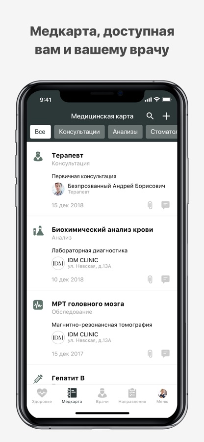 – Храните заключения, результаты обследований и анализов в одном приложении;