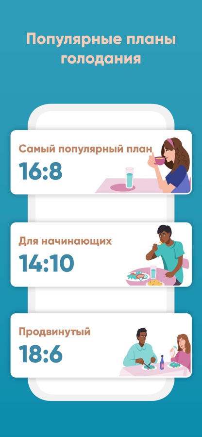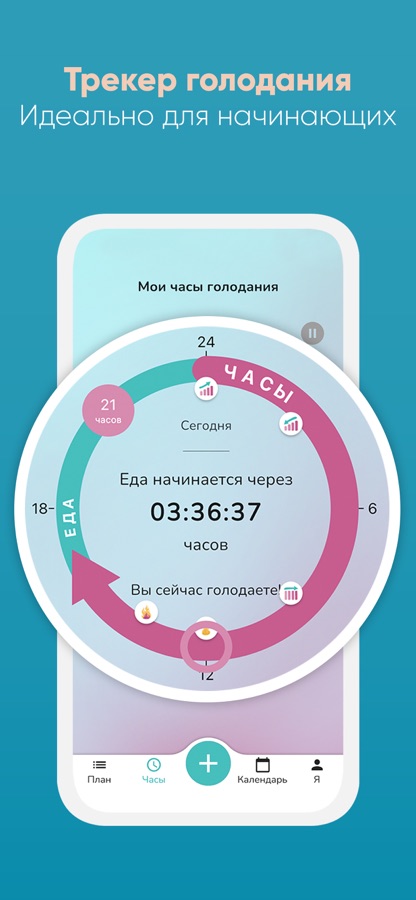 * Отслеживание голодания: трекер голода (трекер голодания) подскажет, когда можно есть. Можно выбрать классический режим 16:8 или другой.