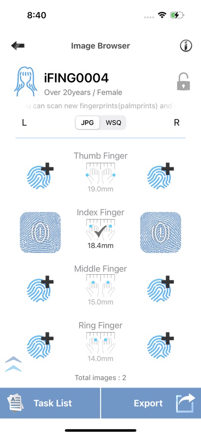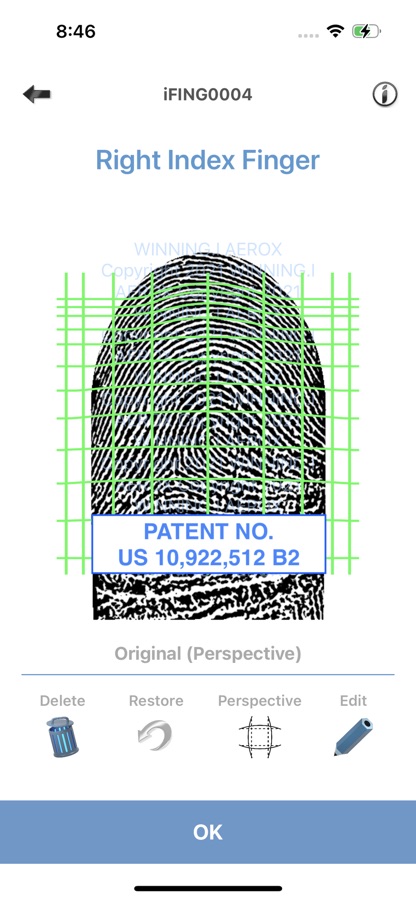This app takes pictures of your fingers/palms with your mobile device’s built-in camera, produces fingerprint/palmprint images, but does not collect any other personal information.