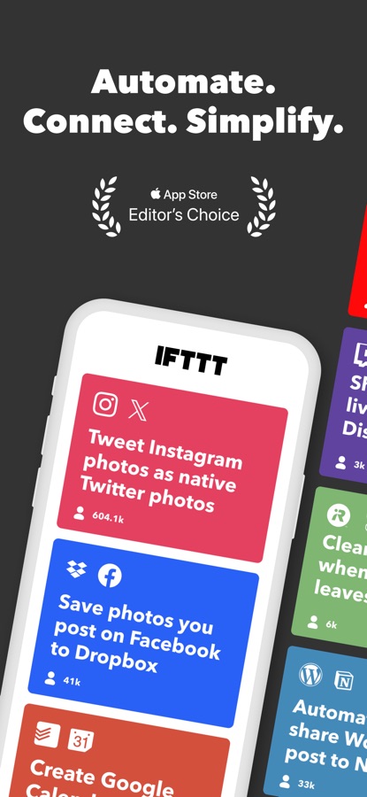 Установите IFTTT на iPhone или iPad, подключите свои любимые сервисы и создайте первый апплет уже через пару минут. Забудьте о повторяющихся задачах — пусть приложения работают за вас. Приложение бесплатно, а премиум-функции можно попробовать в пробный период. Приложение сделает ваш смартфон по-настоящему умным.