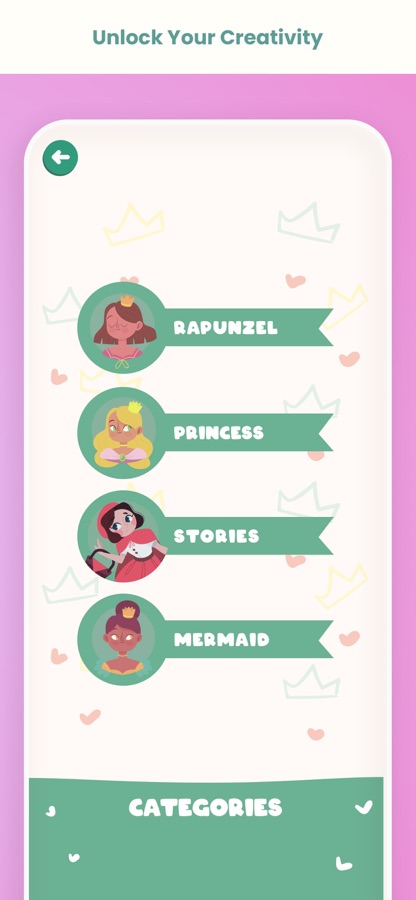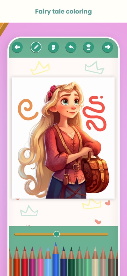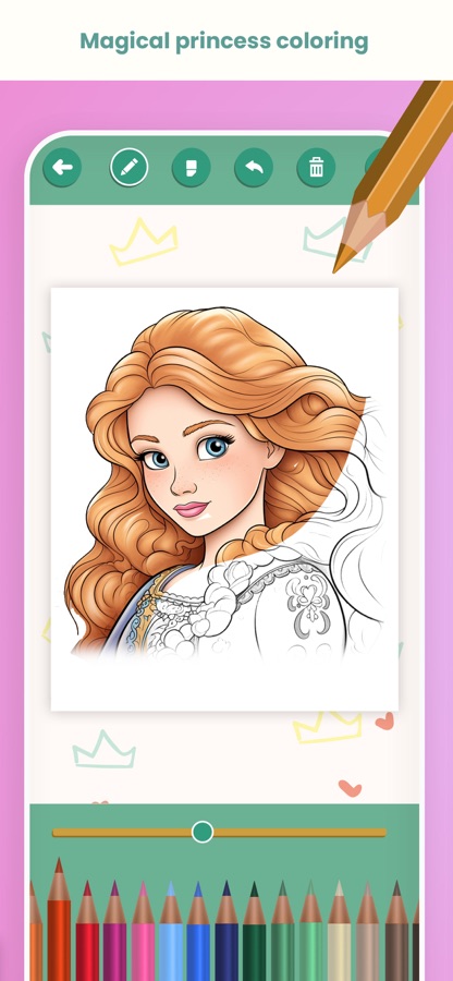 Вы найдёте очаровательные рисунки прекрасных принцесс в роскошных платьях, с макияжем и коронами. Ваша маленькая принцесса будет в восторге от этого приложения!