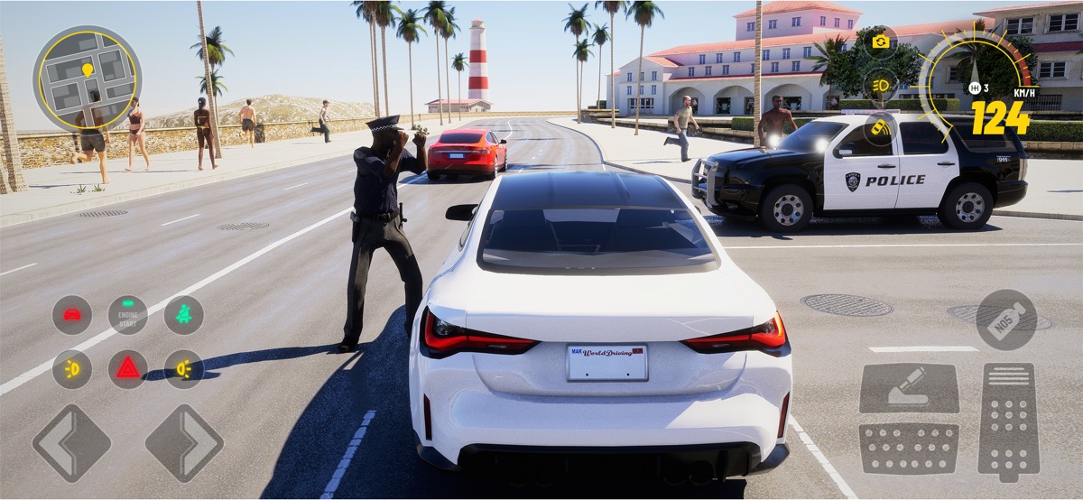 Перво-наперво: пристегните ремень безопасности, безопасность очень важна! В нижней левой части экрана есть две стрелки: они используются для управления рулевым колесом. Есть и другие опции, такие как кнопки включения и выключения фар, тормозов и управления коробкой передач. Кроме того, в правом верхнем углу вы можете увидеть, насколько быстро вы едете. После прохождения уровня вы будете вознаграждены определенным количеством монет, которые можно использовать для улучшения вашего автомобиля. Если вы любите приключения, вы можете выбрать другой режим игры: свободная поездка. Для начала снова пристегните ремень безопасности. Двигайтесь вверх и вниз по улицам, когда захотите, но старайтесь избегать других водителей. Находясь в режиме свободной езды, не забывайте качаться по контрольным точкам, чтобы ваш прогресс сохранялся. Нажимайте на тормоз, когда захотите замедлить движение, и включайте поворотники, когда решите повернуть. Загляните в гараж: заработав достаточно монет, купите машину своей мечты и при необходимости внесите любые изменения. Теперь, наконец, настало время получить награды сразу после того, как вы закончите эту опасную поездку. Откройте для себя новые ландшафты, маршруты и уровни, настраиваясь ежедневно.