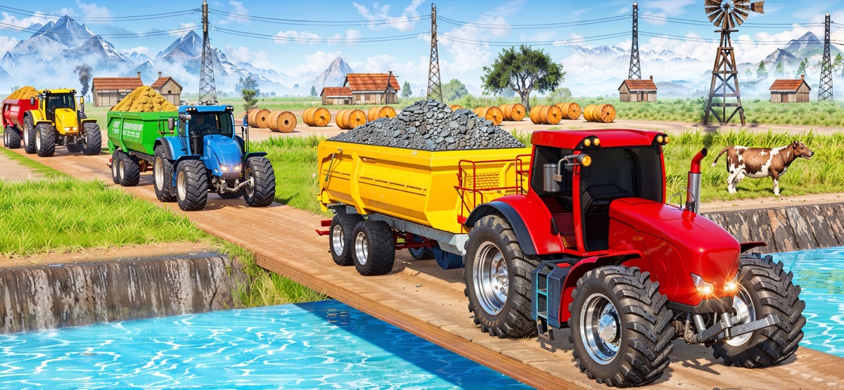 В этой игре о вождении трактора вы получите массу удовольствия от игры по вождению трактора. Подготовьте себя к современному сельскому хозяйству с помощью набора новых тракторов и отправляйтесь на сельскохозяйственную землю для посева, подготовки участка, и после этого у вас есть новые задачи для сельского хозяйства. После того, как вырастили урожай, соберите урожай и срежьте его. перевозите урожай на зерновой рынок и зарабатывайте деньги на развитие и расходы своей семьи. В этой игре у вас есть много задач по сельскому хозяйству, таких как пшеница, рис, хлопок 4 разных культур и продавайте их на лесной рынок, чтобы добиться своего. Это лучшая тяжелая сельхозтехника для сельского хозяйства и грузовой автомобиль для грузовых задач. Откройте собственную ферму и управляйте огромной техникой в открытом мире.