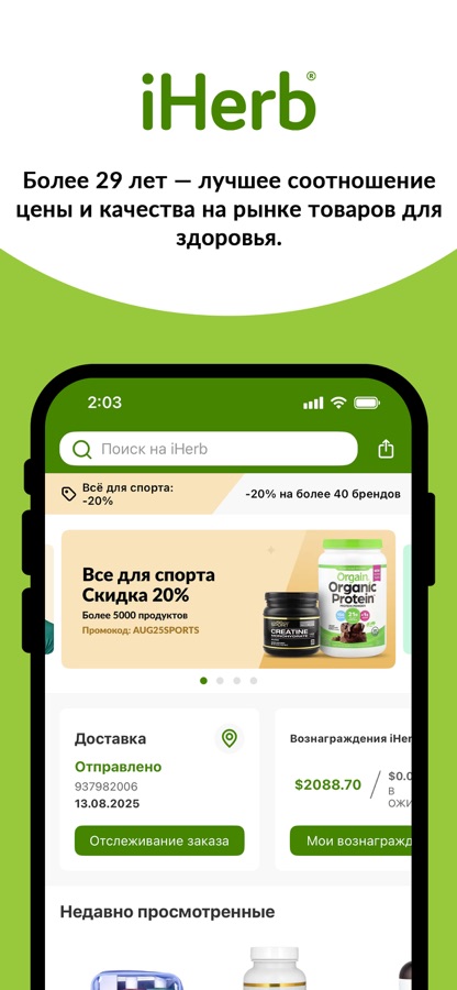 Для пользователей приложения iHerb доступны эксклюзивные акции и предложения. Сэкономьте 20% на первом заказе через приложение с кодом APP123 (действуют правила и условия).