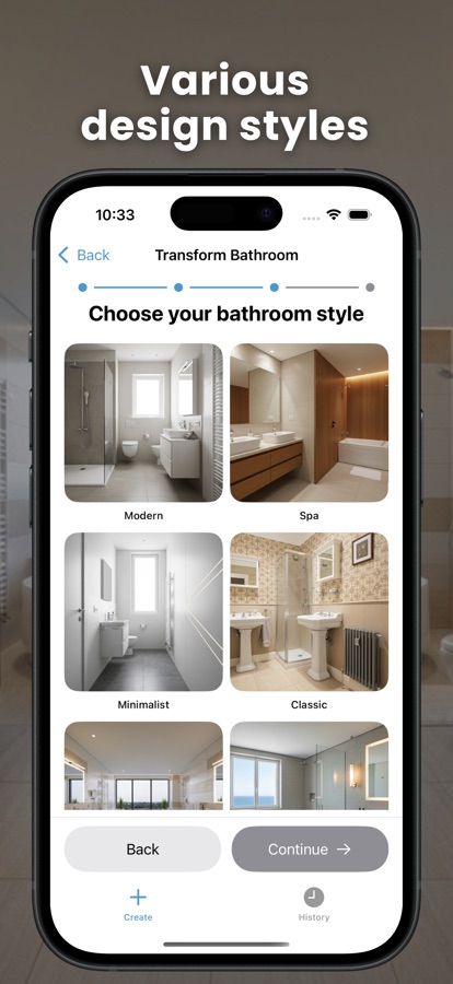 — Преобразите Вашу Ванную: Загрузите фото и наблюдайте, как ИИ перепроектирует вашу ванную в различных стилях: Современный, Спа, Люкс, Минималистичный, Скандинавский и другие. Идеально для ремонта и проектов по переделке ванной.