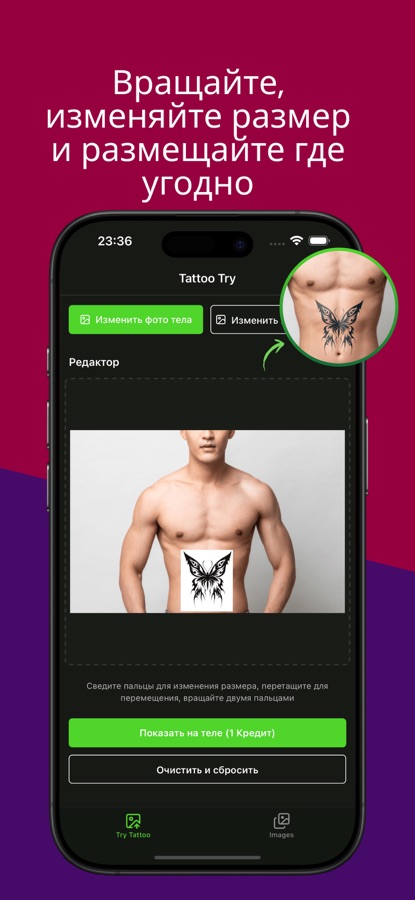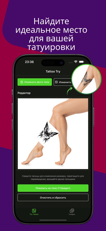 Работает с любым дизайном: У вас есть детализированная и сложная идея? Нет проблем. Наше приложение создано так, чтобы даже сложные изображения и татуировки обрабатывались красиво, и вы точно увидели, как будет выглядеть ваша финальная работа.