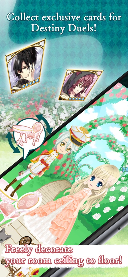 Gorgeous cinderella dresses, beautiful room backgrounds and gardens, and cute accessories all await you in this anime game for women. Freely rotate your avatar and decorations for a mystic wonderland experience! Limited edition attire pieces are constantly being added so that you can always stay up to date with the latest trends. Characters from the story are also available as avatars! Dress up your love interest for the perfect date night together.
