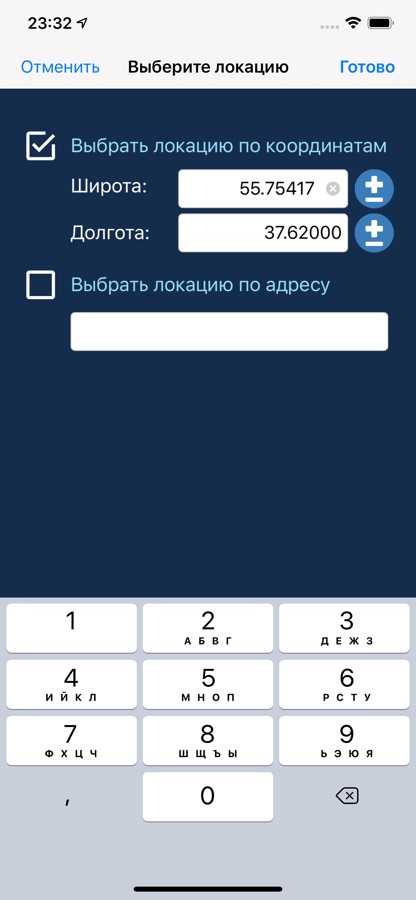 • При вводе координат задаётся любое местоположение