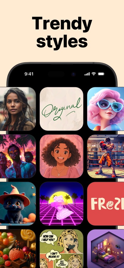 • Create AI selfies in different looks or moods