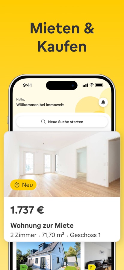 Willkommen bei immowelt – deiner All-in-One-App zum Mieten, Kaufen und Inserieren von Immobilien in Deutschland und Österreich! Finde deine neue Wohnung, dein Haus, eine WG oder ein Neubauprojekt – aus tausenden Immobilien zur Miete oder zum Kauf. Du möchtest eine Immobilie inserieren? Mit unseren smarten KI-Features bietest du sie schnell und einfach an.