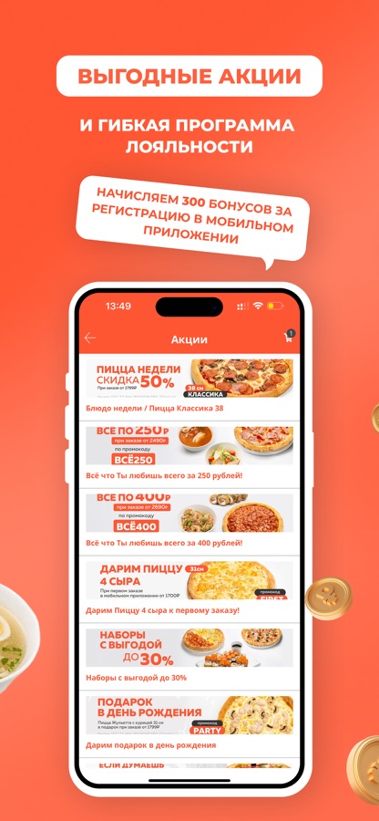 Скачивайте наше приложение, присоединяйтесь к программе лояльности, накапливайте кэшбек и оплачивайте им 20% от суммы заказа.