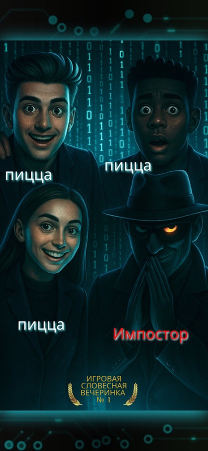 Impostor — это многопользовательская игра со словами для вечеринок про блеф, подсказки и социальную дедукцию. Найди, кто самозванец среди друзей, или обмани всех и переживи голосование.