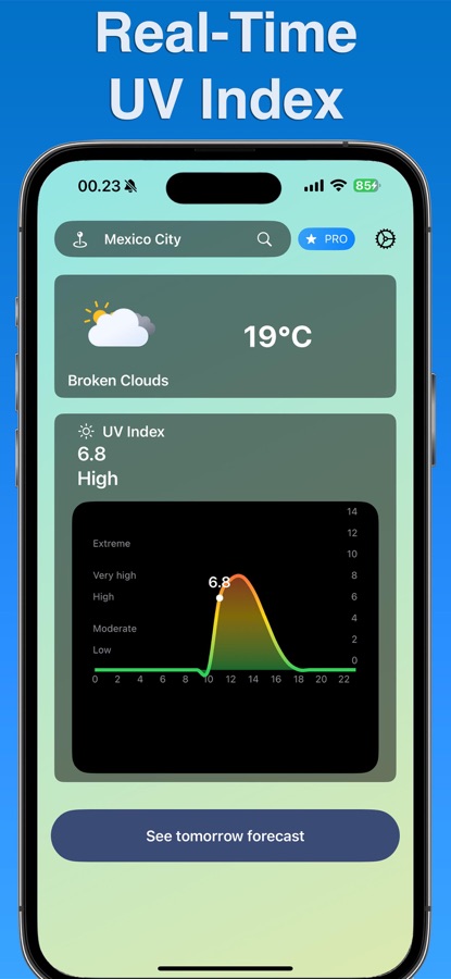 ・Tomorrow’s UV Forecast: Plan ahead with the forecasted UV index for the following day, letting you know when extra sun protection may be needed.