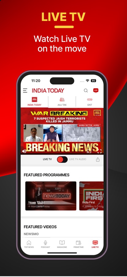 • Live TV & Audio News: Watch India Today Live anytime, anywhere, absolutely free. Stream live news from Aaj Tak and Good News Today channels seamlessly. Prefer listening on the go? Switch to audio mode and stay updated with live news without needing to stream video.